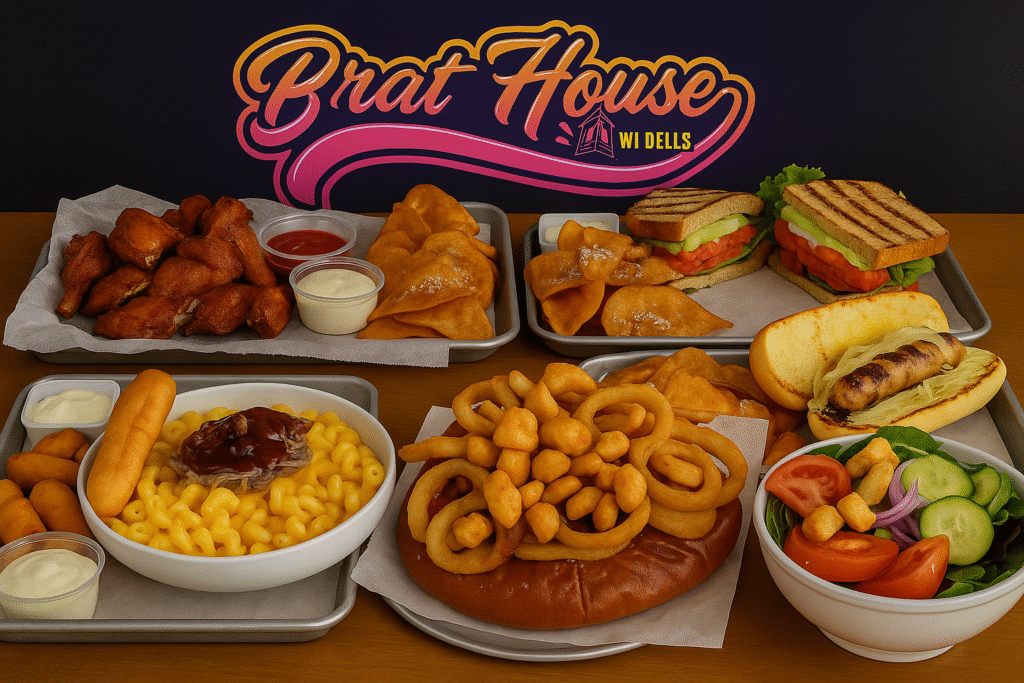 Brat House Grill in Wisconsin Dells serves up classic Wisconsin comfort food—brats, burgers, cheese curds, and hearty pub favorites—in a lively, family-friendly tavern setting.