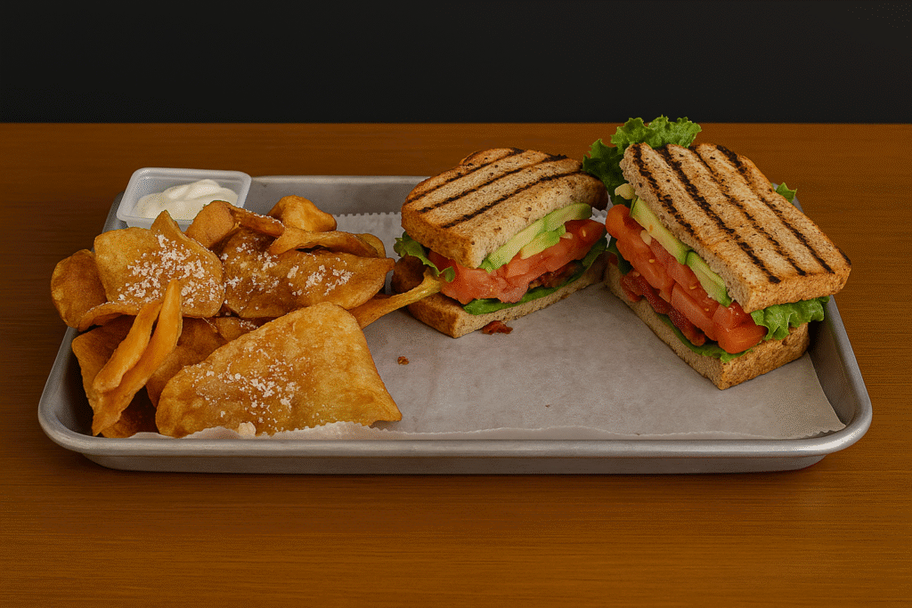 Served with Chips, Applesauce, or upgrade to Crinkle Cut Fries for 1.00