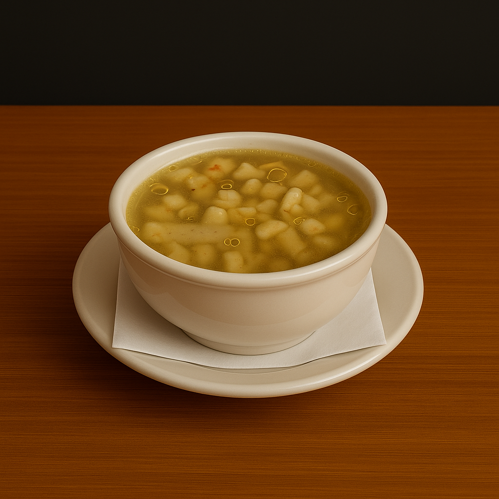 German dumpling with cracked black pepper. Sautéed in butter and simmered in chicken broth